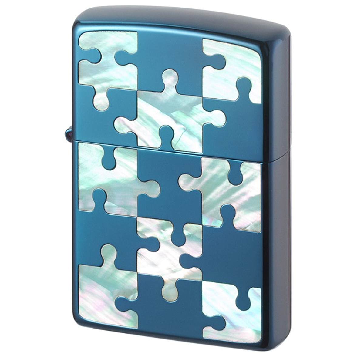 見た目にも爽やかなIPブルーチタンの配色に、天然のシェル(貝殻)をパズルの柄に埋め込んだ、おしゃれなモデルです。